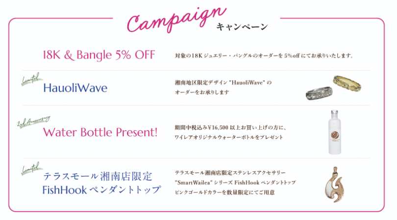 ワイレアテラスモール湘南店は、この度オープンより2周年を迎えます。